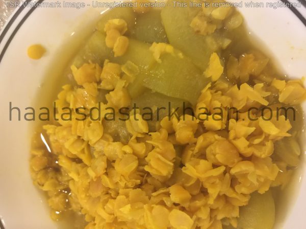Chana Daal and Bottle gourd cooked with spices and tomato coconut puree.
