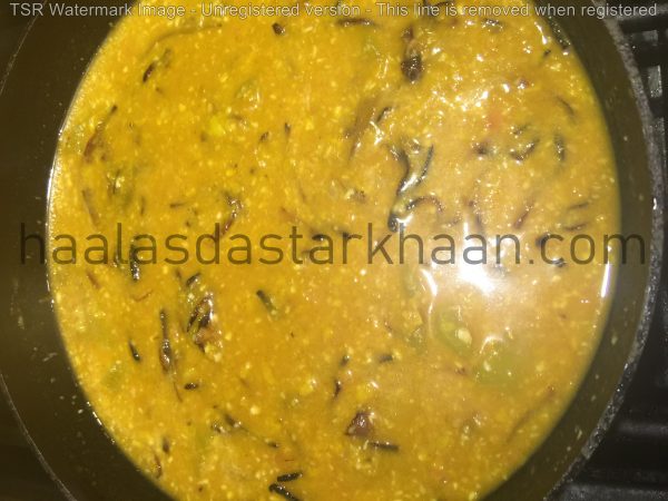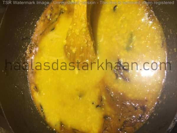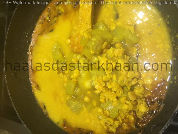 Boil daal with Lauki adding little salt and turmeric. Once cooked, take the lauki out.